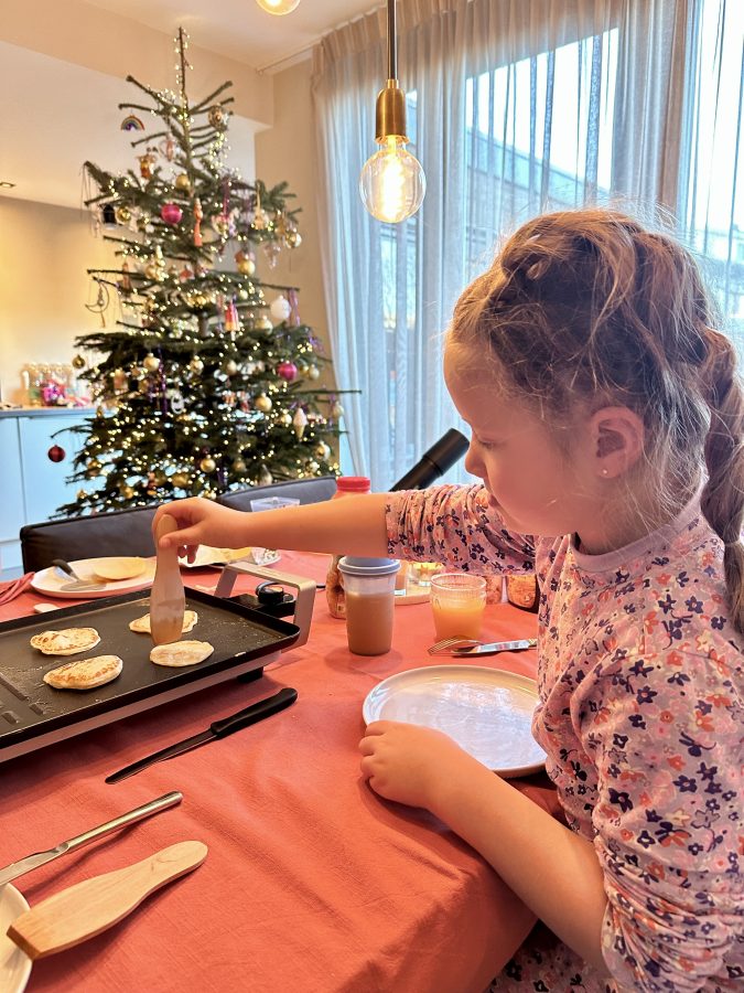 We gaan gourmetten in pyjama op kerstochtend. Geen vlees, vis en stokbroodjes kruidenboter, maar pannenkoekjes, gebakken eitjes en croissantjes met jam. Samen aan tafel, nog slaperig, zonder haast. Geen ‘zo hoort het’, maar: zo voelt het goed.