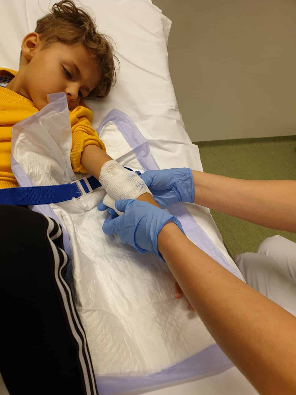 De minuten in de wachtruimte voelden als uren. Het was ook nog eens ontzettend druk, dus we zaten ook bijna een uur te wachten, maar gelukkig kwam daar eindelijk de arts. Jaimy was intussen alweer in slaap gevallen dus we moesten hem wakker maken zodat de arts hem kon onderzoeken. Na wat kleine testjes zei hij vrij snel: “Ik vermoed een blindedarmontsteking dus ik verwijs jullie door naar de spoedeisende hulp.”. Pardon, u zei wat!? Maar hoe kan dat want de pijn zit niet onderin maar bij zijn navel!? Meteen schoot er van alles door mijn hoofd waaronder diverse doemscenario’s! Volgens deze lieve arts schijnen kinderen vaak de navel aan te wijzen als pijnpunt bij een blindedarmontsteking en hij wilde het zekere voor het onzekere nemen. Wij liepen meteen door naar de spoedeisende hulp. Jaimy kreeg een echo en er werd bloed afgenomen. Na een uur wachten kwam de uitslag. De ontstekingswaarden waren sky high, maar op de echo konden ze niet zo goed zien wat er aan de hand was. Ze zouden gaan opereren want ze wilden geen risico nemen; alle symptomen wijzen op een blindedarmontsteking. Na wat formulieren invullen en wat achtergrondinformatie te hebben opgevraagd bij mijn schoonfamilie, lag Jaimy om 19u op de operatietafel. Mijn moeder was net aangekomen in het ziekenhuis en mijn vriend was net weg om thuis wat spullen te halen. Hij wist nog niet eens dat de operatie al was begonnen…. De operatie zou driekwartier duren en na een hele lange, zenuwslopende anderhalf uur, kwam de verpleegster eindelijk de kamer in. De operatie duurde wat langer dan gepland omdat de blindedarm geknapt was (dag twijfel!) en de hele buikholte gevuld was met pus. Het moest dus goed schoongemaakt worden, maar het was gelukt; ik mocht mijn kind halen! En dit was het begin van een lange ziekenhuisopname…..